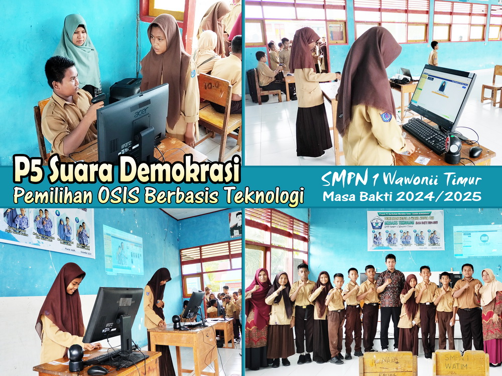 Kegiatan pemilu OSIS berbasis TIK ini dilaksanakan oleh peserta didik melalui bimbingan dan pengawasan guru. Peserta didik SMP Negeri 1 Wawonii Timur terlibat secara aktif baik sebagai pasangan calon, panitia, maupun sebagai partisipan yang berhak menggunakan suaranya untuk memilih pasangan calon yang diyakini mampu mengemban amanah sebagai ketua dan wakil ketua OSIS masa bakti 2024/2025. Melalui Pelaksanaan Pemilu OSIS Berbasis Teknologi ini, Peserta didik diharapkan dapat melaksanakan tugasnya secara mandiri, mengutamakan prinsip gotong royong, menetapkan pilihan tanpa memandang SARA, berpikir kritis dalam menyelesaikan permasalahan yang timbul, serta kreatif dan inovatif yang telah ditunjukkan dengan melaksanakan pemilu OSIS berbasis teknologi.