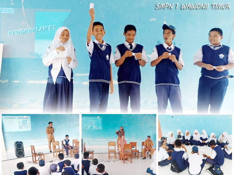 Senin, 11 November 2024, SMP Negeri 1 Wawonii Timur memulai pelaksanaan Projek Penguatan Profil Pelajar Pancasila (P5) untuk 3 tema yaitu Suara Demokrasi, Kewirausahaan dan Kearifan Lokal. SMP Negeri Wawonii Timur sebelumnya telah melakukan perencanaan P5 dengan sistem blok. Sistem blok adalah pola pembelajaran yang merupakan akumulasi jam pelajaran dalam setiap pertemuan tatap muka suatu mata pelajaran yang sebelumnya dilaksanakan satu atau dua kali dalam seminggu. Dalam hal ini pelaksanaan P5 untuk SMPN 1 Wawonii Timur dilaksanakan selama 2 minggu penuh di akhir semester ganjil T.P. 2024/2025 sebelum pelaksanaan Penilaian Akhir Semester (PAS) yakni mulai tanggal 11 November s.d. 23 November 2024. Adapun tema P5 di SMPN 1 Wawonii Timur yaitu Suara Demokrasi, Kewirausahaan dan Kearifan Lokal. Masing-masing tema diakomodir oleh beberapa guru yang saling berkolaborasi menyusun jadwal/kalender proyek, modul, materi serta kegiatan yang akan dilaksanakan. Dihari pertama pelaksanaan P5, peserta didik dibekali materi tentang pengenalan P5 serta materi tentang tema yang akan dilaksanakan. Dalam kegiatan, peserta didik sangat antusias berdiskusi dan kolaborasi antar pendidik berjalan dengan baik. (atm)